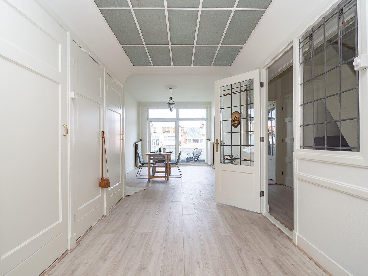 For rent at Thorbeckelaan 457 in The Hague: a spacious triple upper house of approximately 185 m², available from 1 November for €3,250 per month (excluding utilities). The property is in the private sector, so no housing permit is required. This house, located in the popular Vruchtenbuurt, was completely renovated in 2021 and combines classic features such as stained glass windows and a fireplace with modern comforts, including a luxury kitchen with built-in appliances, updated bathrooms and new flooring.