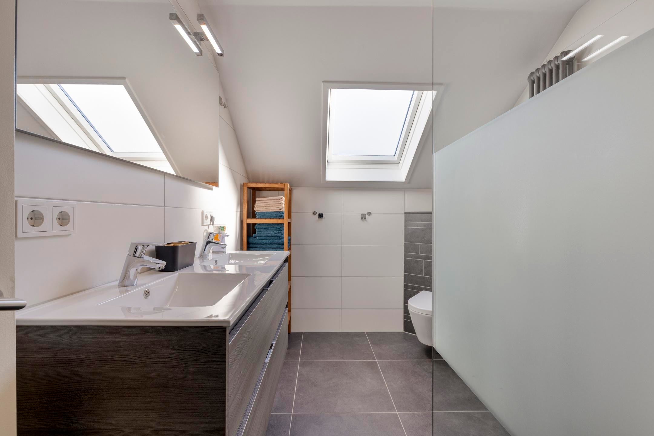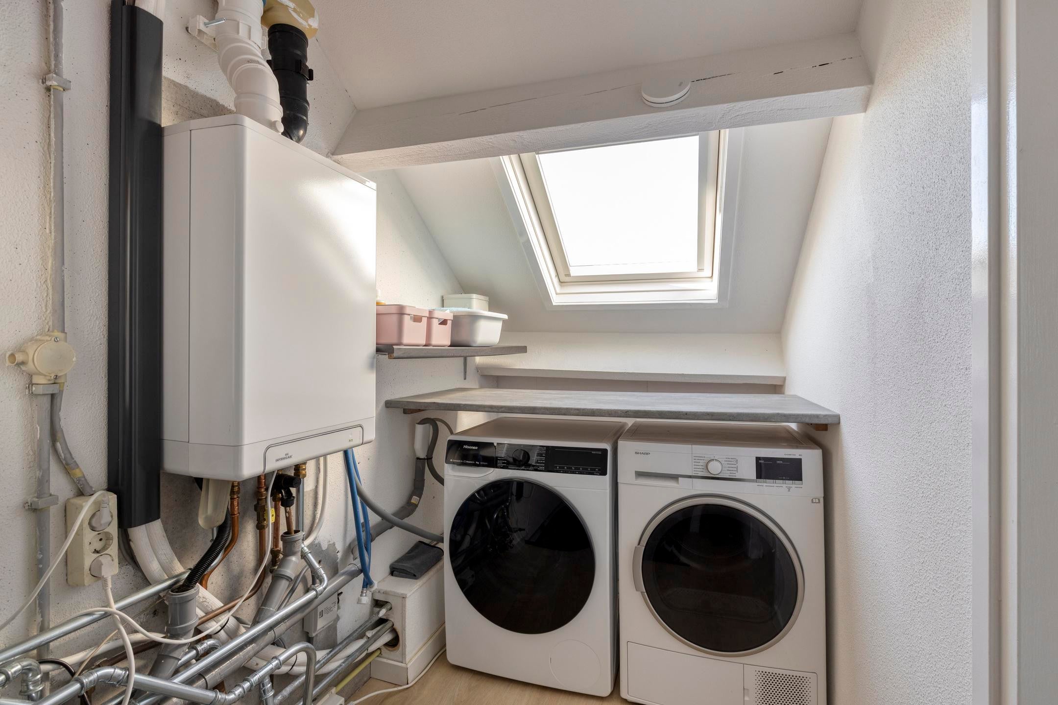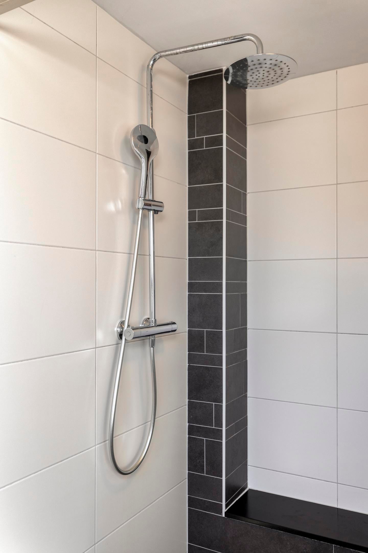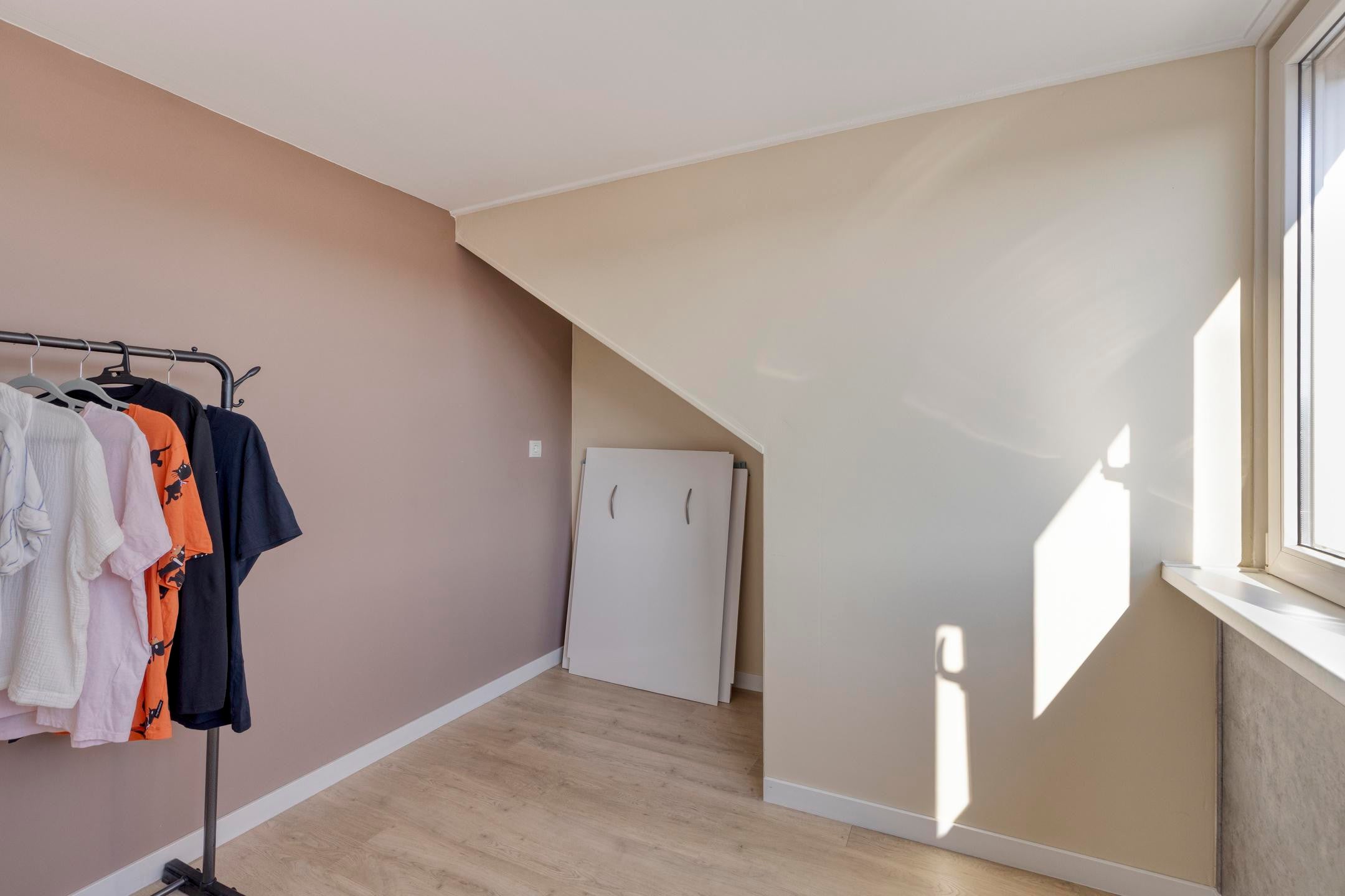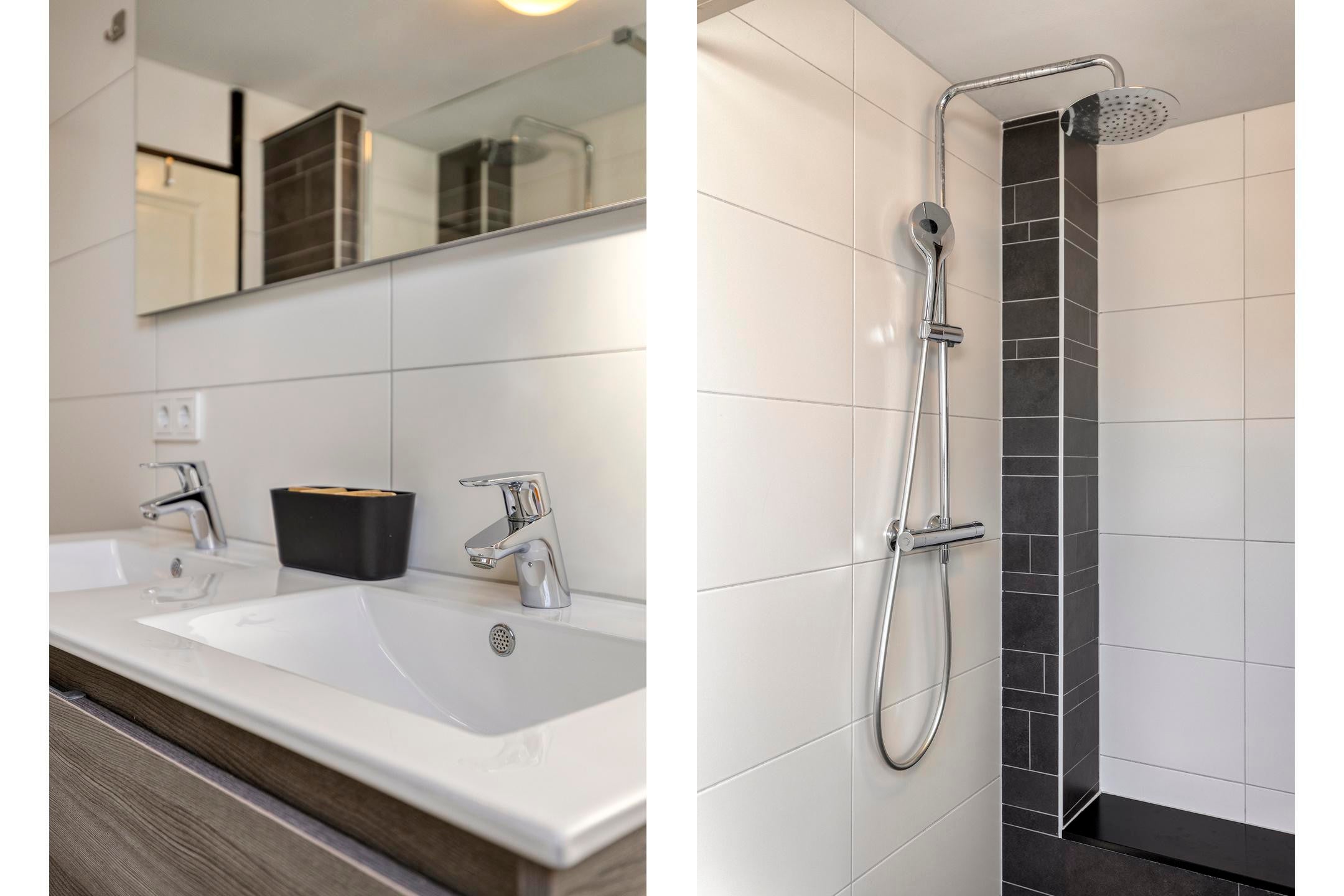 Op de verdiepingen bevinden zich meerdere slaapkamers, geschikt voor een gezin of voor een combinatie van wonen en werken. De badkamer is modern uitgevoerd en voorzien van een inloopdouche en een dubbele wastafel. De woning beschikt daarnaast over een separate toiletruimte.