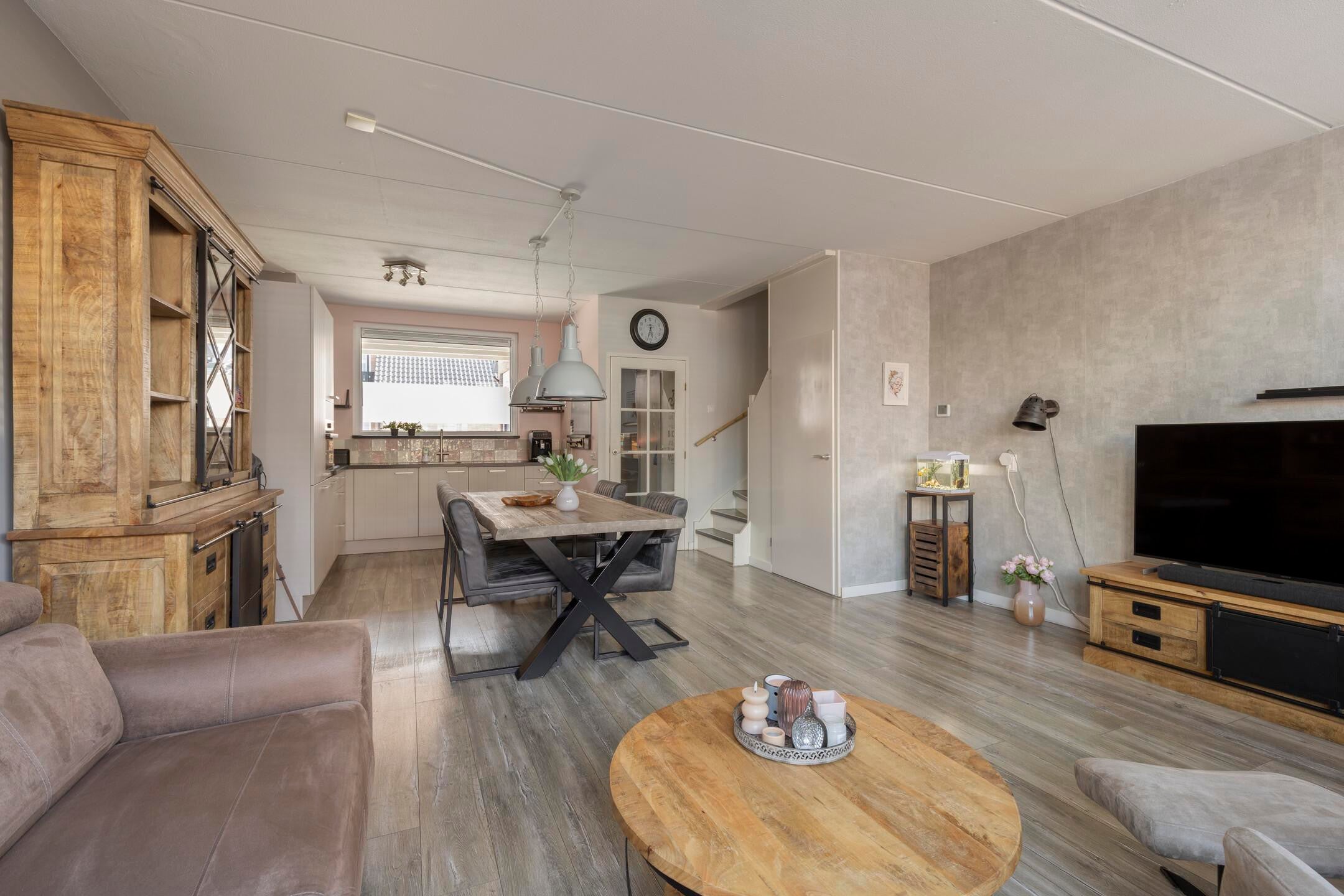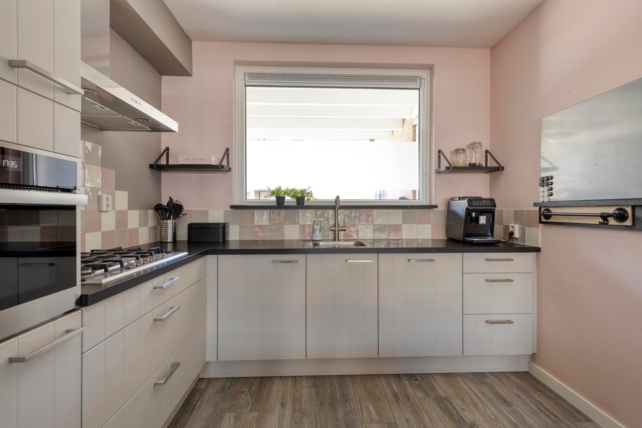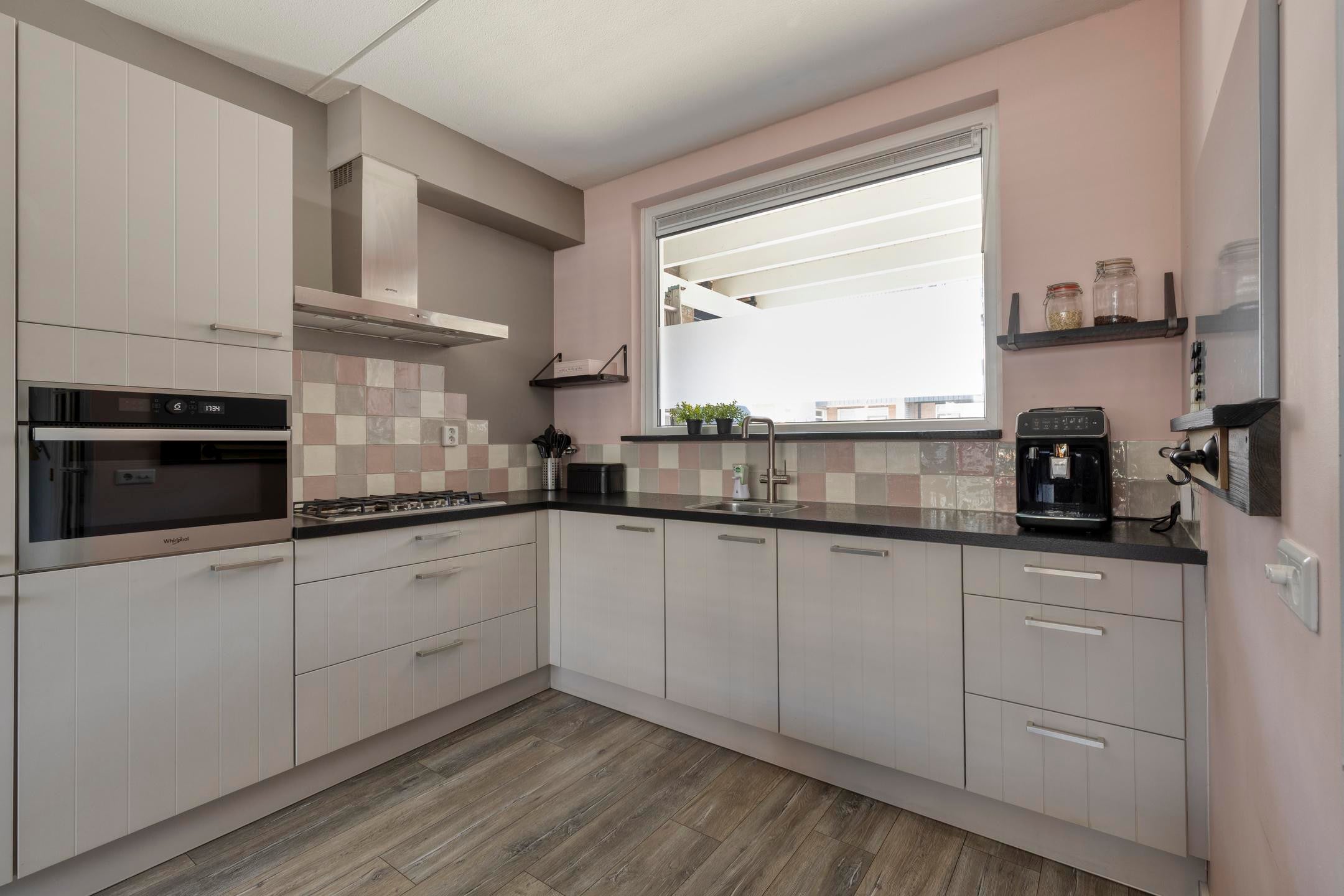 De woning verkeert in een verzorgde staat en is modern afgewerkt. Bij binnenkomst valt direct de lichte en ruime woonkamer op, voorzien van een nette vloer en een prettige indeling. De open keuken sluit hier goed op aan en is praktisch ingericht met voldoende werk- en kastruimte en diverse inbouwapparatuur.