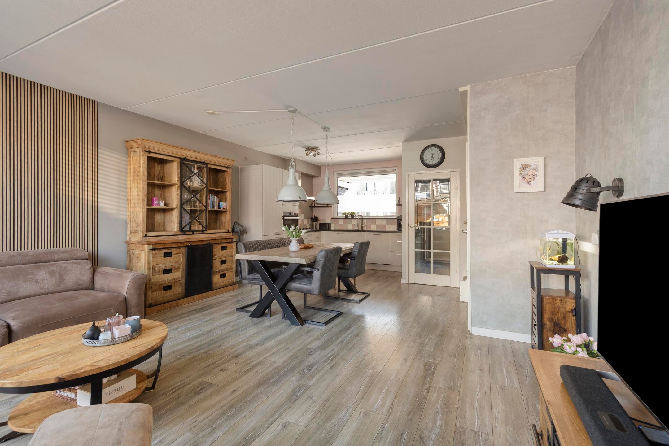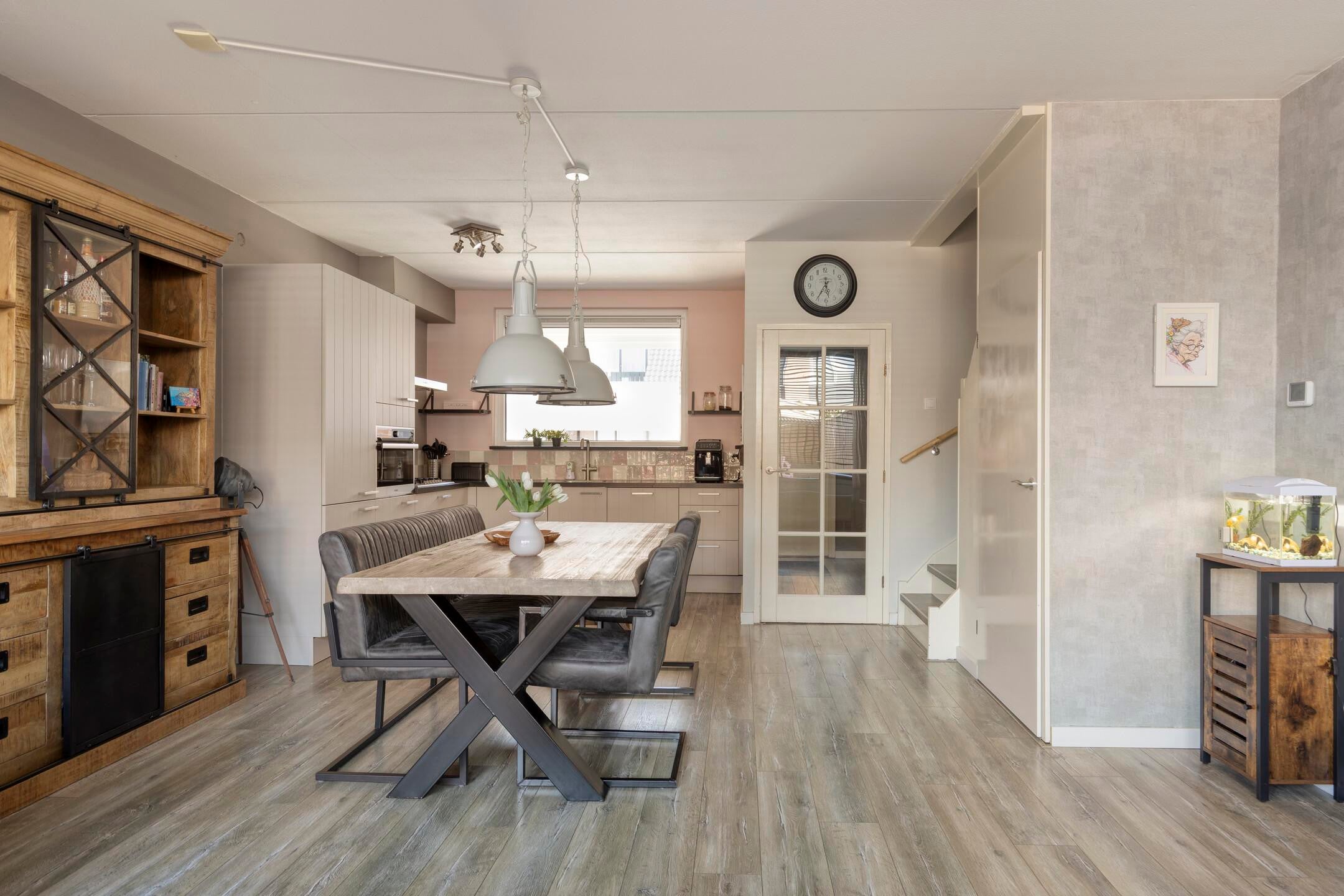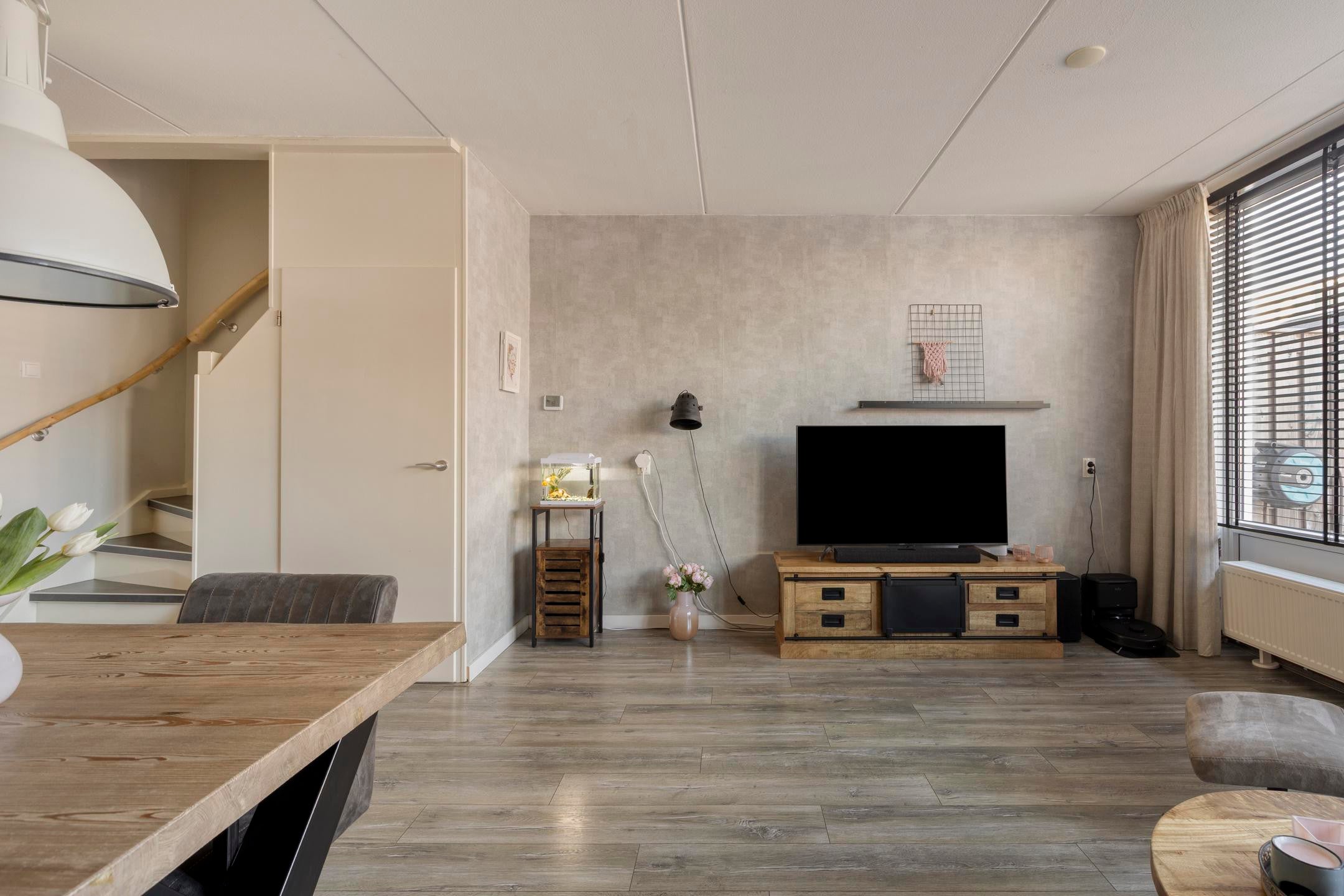 De woning verkeert in een verzorgde staat en is modern afgewerkt. Bij binnenkomst valt direct de lichte en ruime woonkamer op, voorzien van een nette vloer en een prettige indeling. De open keuken sluit hier goed op aan en is praktisch ingericht met voldoende werk- en kastruimte en diverse inbouwapparatuur.